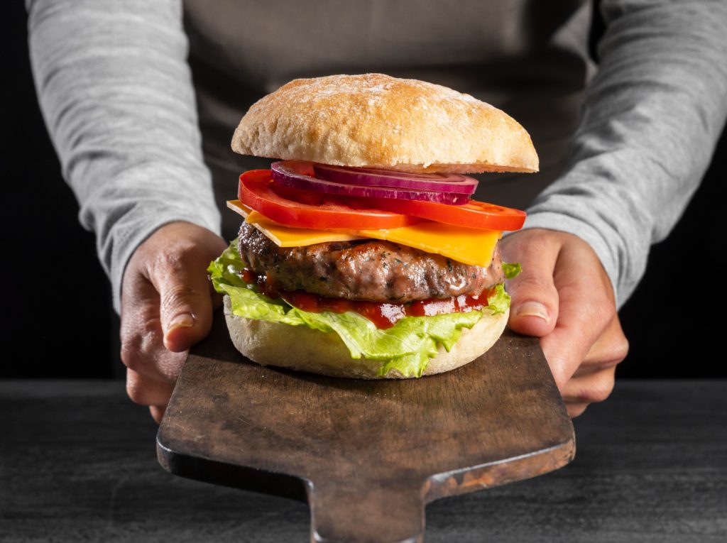 Este espesor permite que el calor penetre de forma gradual hacia el centro, manteniendo la temperatura de la carne en el punto exacto de jugosidad. Al trabajar con piezas gruesas, la caramelización exterior ocurre en el momento preciso en que el interior alcanza su grado de cocción ideal. La relación entre superficie y volumen asegura que el contraste de texturas resulte evidente en cada bocado. Una hamburguesa bien formada de este grosor se mantiene estable durante todo el proceso, permitiendo una gestión precisa del tiempo y de la intensidad del fuego.